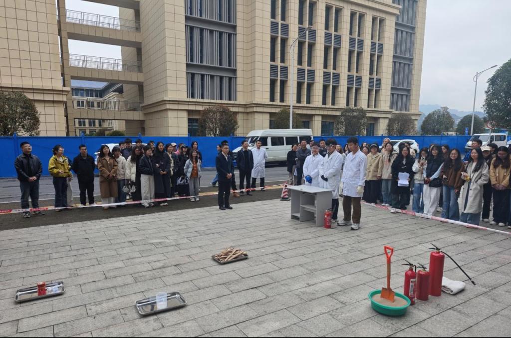 演练前,学院实验中心负责人强调,实验室是教学科研的核心场所,易燃易爆试剂、加热设备等并存,火情类型复杂,严禁盲目处置。必须严格遵循“一看火情、二判类型、三选方法、四保安全”流程,遇到不明火情第一时间撤离报警,坚决守住生命安全底线。