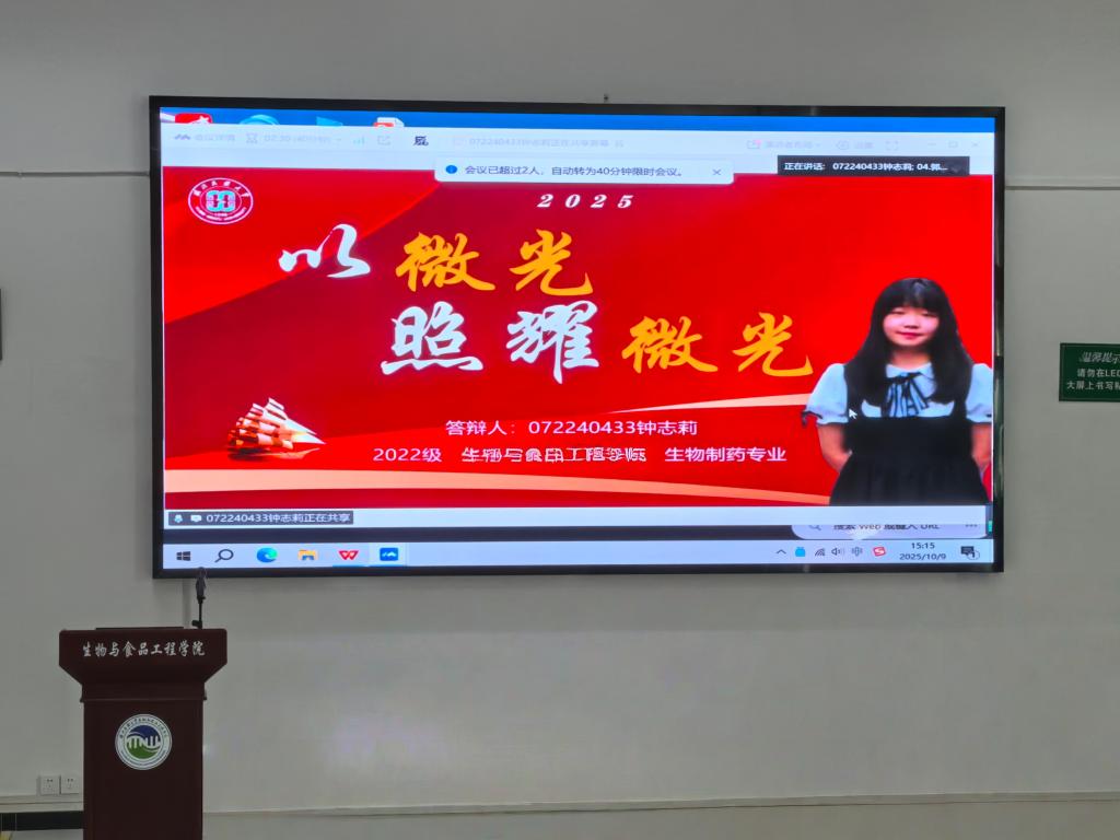 10月9日下午,我院2024—2025学年国家奖学金答辩会在4202教室顺利举行。本次答辩会由曾思琪老师主持,学生科科长陈杰、教学科科长卢婵、学院团委书记程琴、辅导员罗祖毅担任评委,8名学生代表参与观摩打分,120余名2024级、2025级学生代表到场聆听。