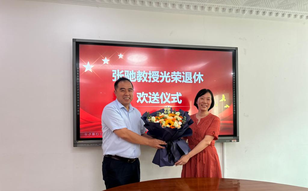 (本网讯)2025年7月1日下午,学院为原院长张驰教授举行简朴而温情的荣休仪式。这位1988年踏上讲台、耕耘杏坛37载的教育家,正式卸下身上重担,开启人生新篇章。学院领导班子、全体教职工齐聚一堂,共同见证这一重要时刻。