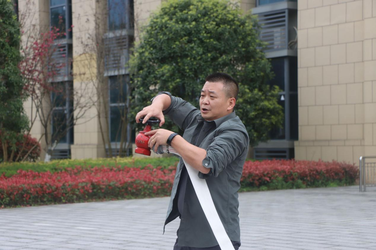 理论讲解结束后,进入实操培训环节,重点开展消防栓、灭火器使用及灭火器实操训练。保卫工作部(处)工作人员现场示范,详细拆解了消防栓的开启方法、水带连接步骤、出水操作规范,以及干粉灭火器“提、拔、握、压”的四字操作要领,对操作过程中的易错点、注意事项进行了重点提醒和纠正。