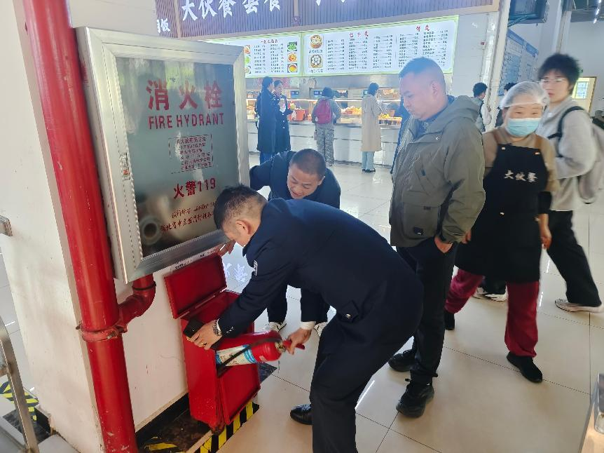 理论培训结束后,检查小组深入校园实验室、图书馆、食堂、学生公寓、超市及门店等重点区域,开展消防设施专项检查。检查人员重点核查灭火器、消防栓、应急照明、疏散指示标志等设施器材是否完好有效、压力是否达标、是否定期检修;细致查看疏散通道、安全出口是否畅通,有无堆放杂物等问题;严格排查实验室危化品存放规范、食堂燃气管道及油烟管道清洗情况、公寓违规用电等风险点。检查过程中,工作人员坚持“不放过任何一个隐患”的原则,力求从源头上消除火灾风险。