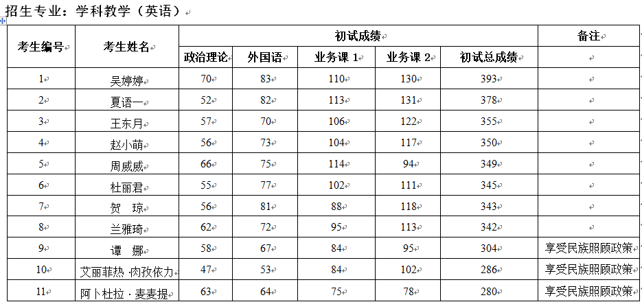 湖北民族大学外国语学院2026年硕士研究生招生第一志愿复试名单