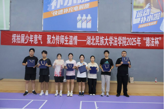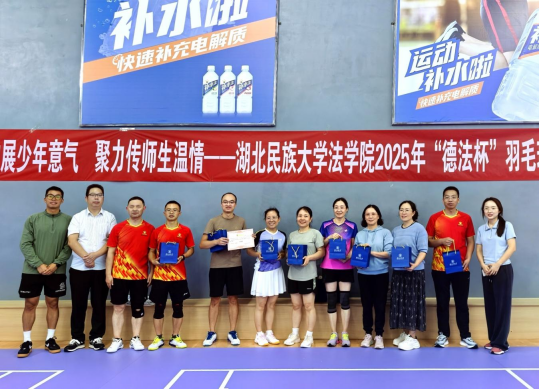 本网讯(记者 杨冬兰 唐裔博 摄影 曹萍艳 李淑女)2025年9月25日,湖北民族大学法学院“德法杯”羽毛球师生友谊赛顺利举行。本次活动由法学院分工会与学生会文体部联合组织,面向全院师生,旨在以羽毛球为纽带,增进互动,营造轻松愉悦的交流氛围,进一步凝聚师生情感。