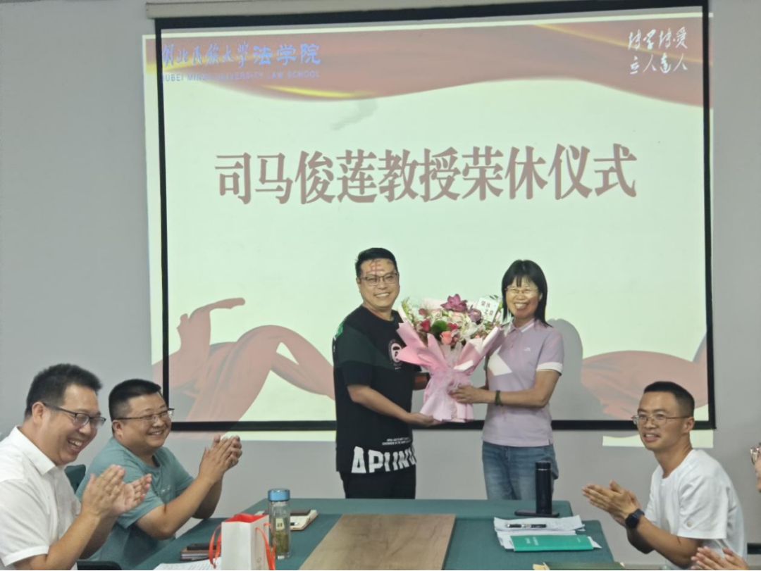 7月3日,法学院在学院会议室举行司马俊莲教授荣休仪式。荣休仪式由党总支书记张明波主持,法学院全体教师出席。