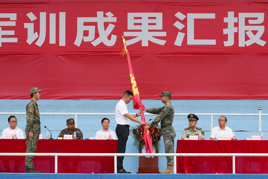 邓磊代表学校党委和军训团对受到表彰的先进集体、优秀教官和优秀学员表示祝贺,对承担本次军训任务的武警恩施支队、全体教官致以崇高敬意,对为军训提供卫勤保障、管理服务及新闻宣传的工作者表示诚挚感谢。他表示,经过军训磨砺,2024级新生洗脱了稚嫩之气、强化了集体观念、升华了纪律意识。他希望新生同学把脚步迈向更加辽阔的世界,争做“引领者”;把目光投向更加遥远的未来,莫负“新时代”;把人生引向更加高远的境界,追求“真善美”。
