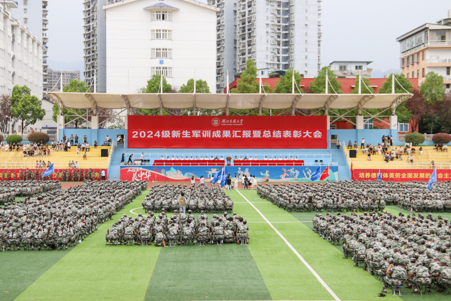 时值秋分,青春飞扬,荣光绽放。9月22日,湖北民族大学2024级新生军训成果汇报暨总结表彰大会在五环体育场举行,4861名2024级本科生身着迷彩,向军训这堂“大思政课”交出自己的青春答卷。