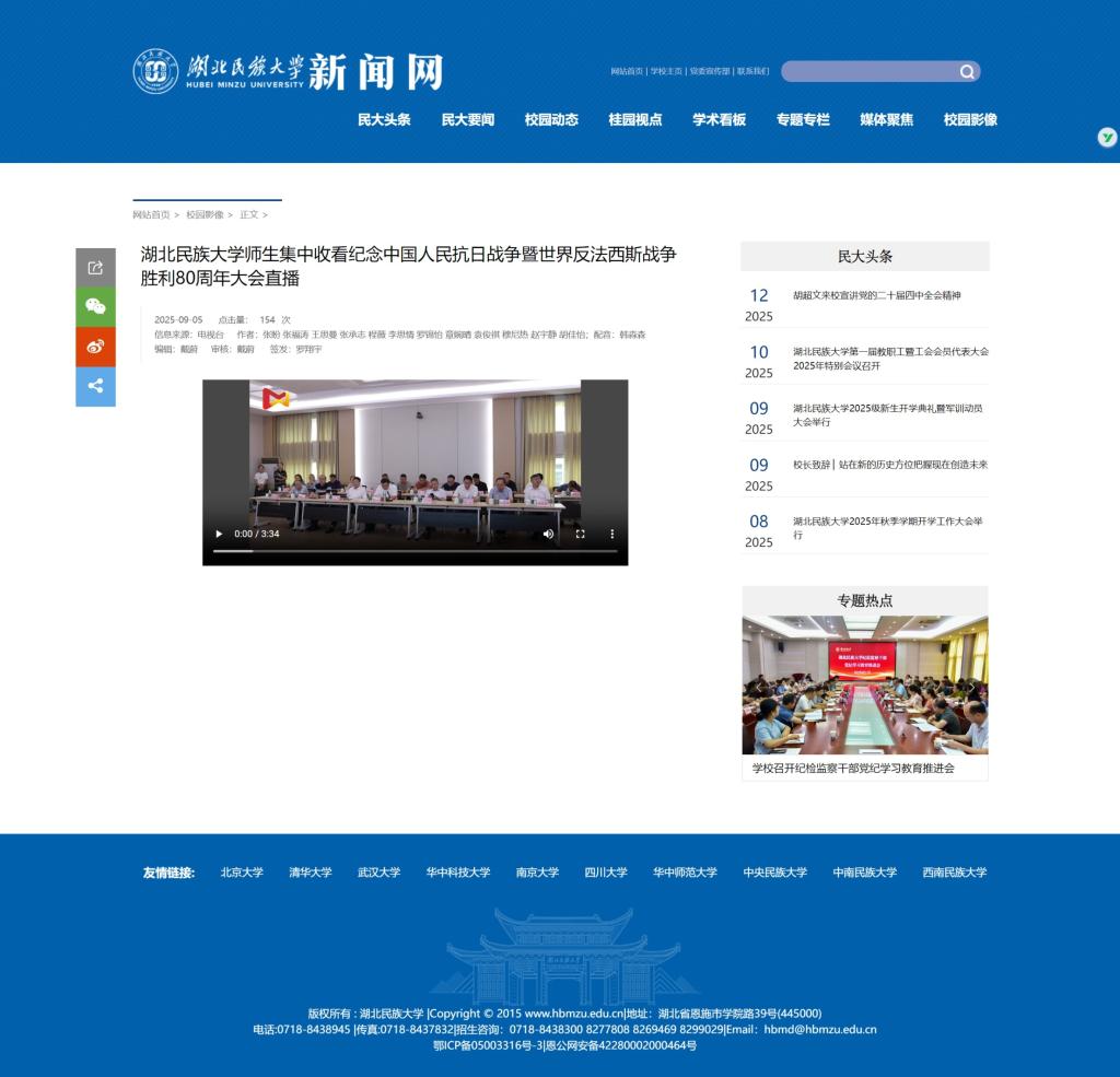 2025年,学校持续深化宣传思想文化工作的创新机制,着力构建全媒体传播格局,不断强化新闻队伍建设与媒体内容建设。全校广大新闻工作者紧紧围绕学校立德树人根本任务与高质量发展战略,深入教学科研与管理服务第一线,提升采写编评质效,发布了一大批有思想、有温度、有品质的新闻报道,生动讲述了民大师生的奋进故事,有效传播了校园正能量,为学校高质量发展营造了良好的舆论氛围。