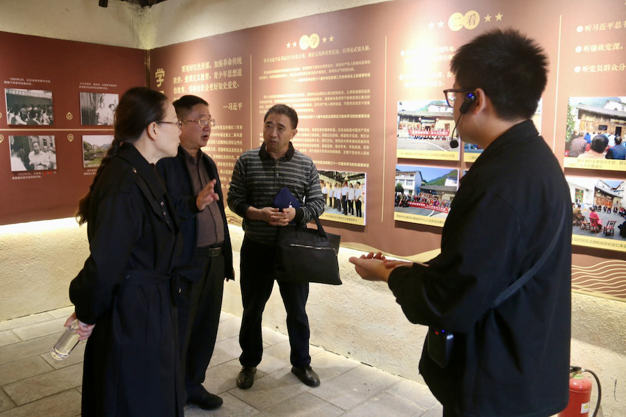 沿着亲风长廊徐行,悬挂的家规家训与院落公约相映成趣,德治与自治的融合气息扑面而来。从乡土文脉延伸至红色记忆,调研队走进沈德枢革命事迹陈列馆(沈家仓屋),通过参观历史旧址、革命文物与图文资料,深入了解中共七大代表沈德枢的革命历程及其家族的红色传承。这份深厚的红色文化底蕴,为麂子渡村推动文旅融合、发展红色研学旅游提供了独特优势。