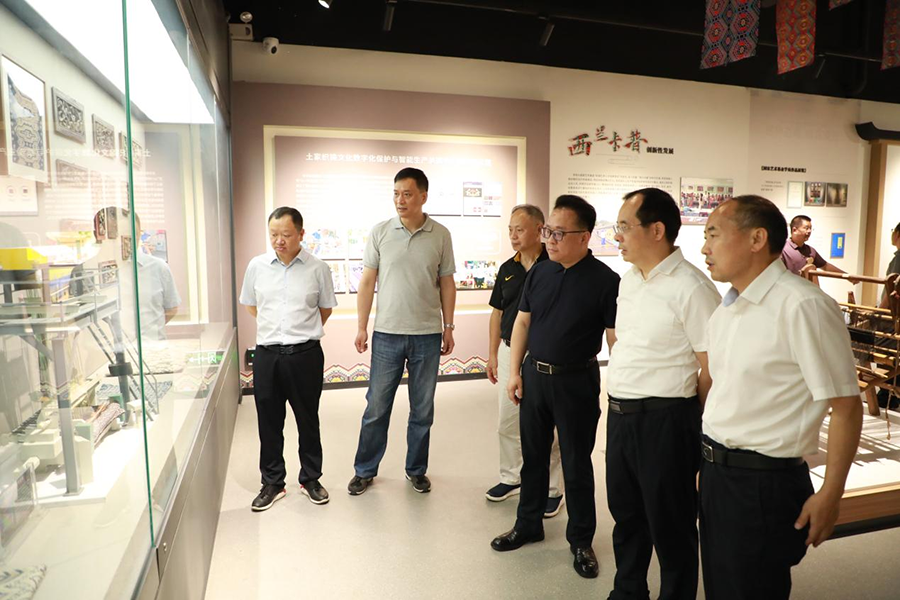 张耀(左五)在李军(左六)陪同下考察学校展览中心