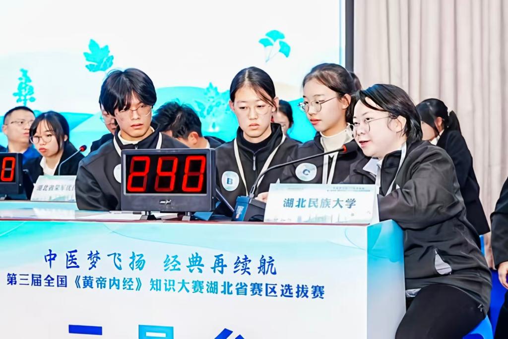 11月14日,第三届全国《黄帝内经》知识大赛湖北赛区决赛在湖北中医药大学黄家湖校区圆满落幕。在学校中医专业负责人袁林老师和中医经典教研室主任张誉丹老师的带领下,中医学子胡明霞、雷夕阳、石洪嘉、周沐琰凭借扎实的理论功底、稳定的临场发挥与出色的团队协作,从来自全省18个单位的19支队伍中脱颖而出,荣获团体一等奖,顺利晋级全国半决赛。张誉丹老师荣获“最佳指导老师”称号。竞赛现场学校参赛队伍获得一等奖本次大赛...