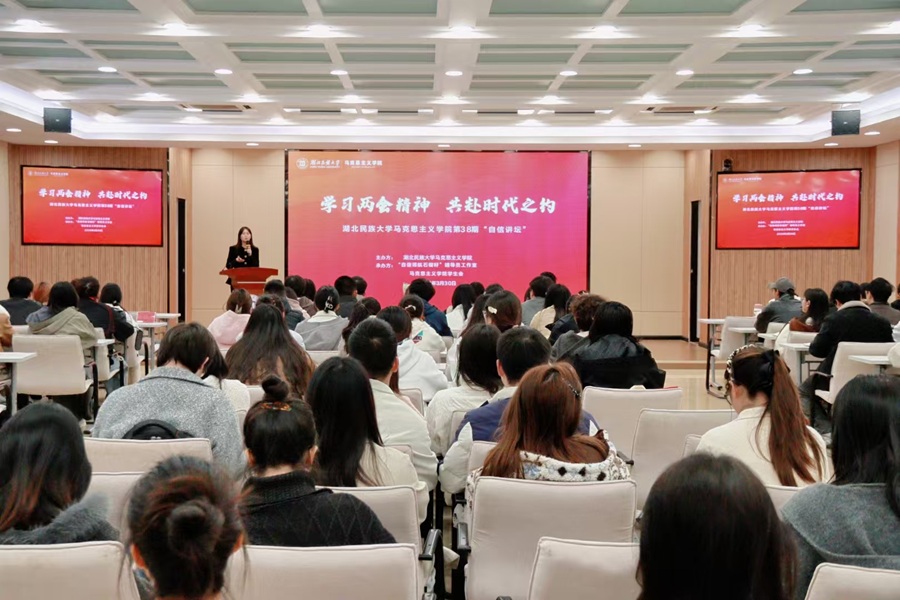 为深入学习贯彻全国两会精神,引导青年学生将个人理想融入国家发展大局,3月30日,马克思主义学院第三十八期自信讲坛在德智楼三楼远程教学观摩室举办。本次讲坛特邀第十四届全国人大代表、恩施高中思政课教师张琼丽担任主讲人,马克思主义学院学生代表、学校青马班学员参加活动。活动现场张琼丽以“学习两会精神,共赴时代之约”为主题,结合自身第四次赴京参会的亲历感悟,为师生带来一堂有温度、有深度的思政大课。她讲述了与...