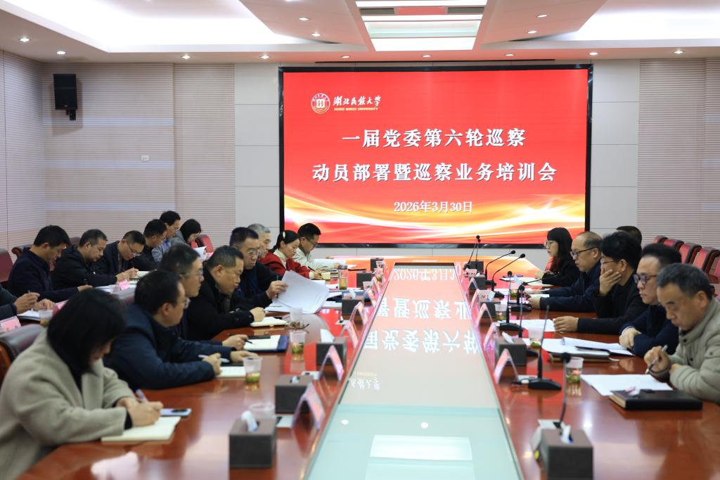2026年3月30日,湖北民族大学一届党委第六轮巡察工作动员部署会议在行政楼3号会议室召开。校党委常委、纪委书记、监察专员、党委巡察工作领导小组副组长张宏磊出席并讲话。