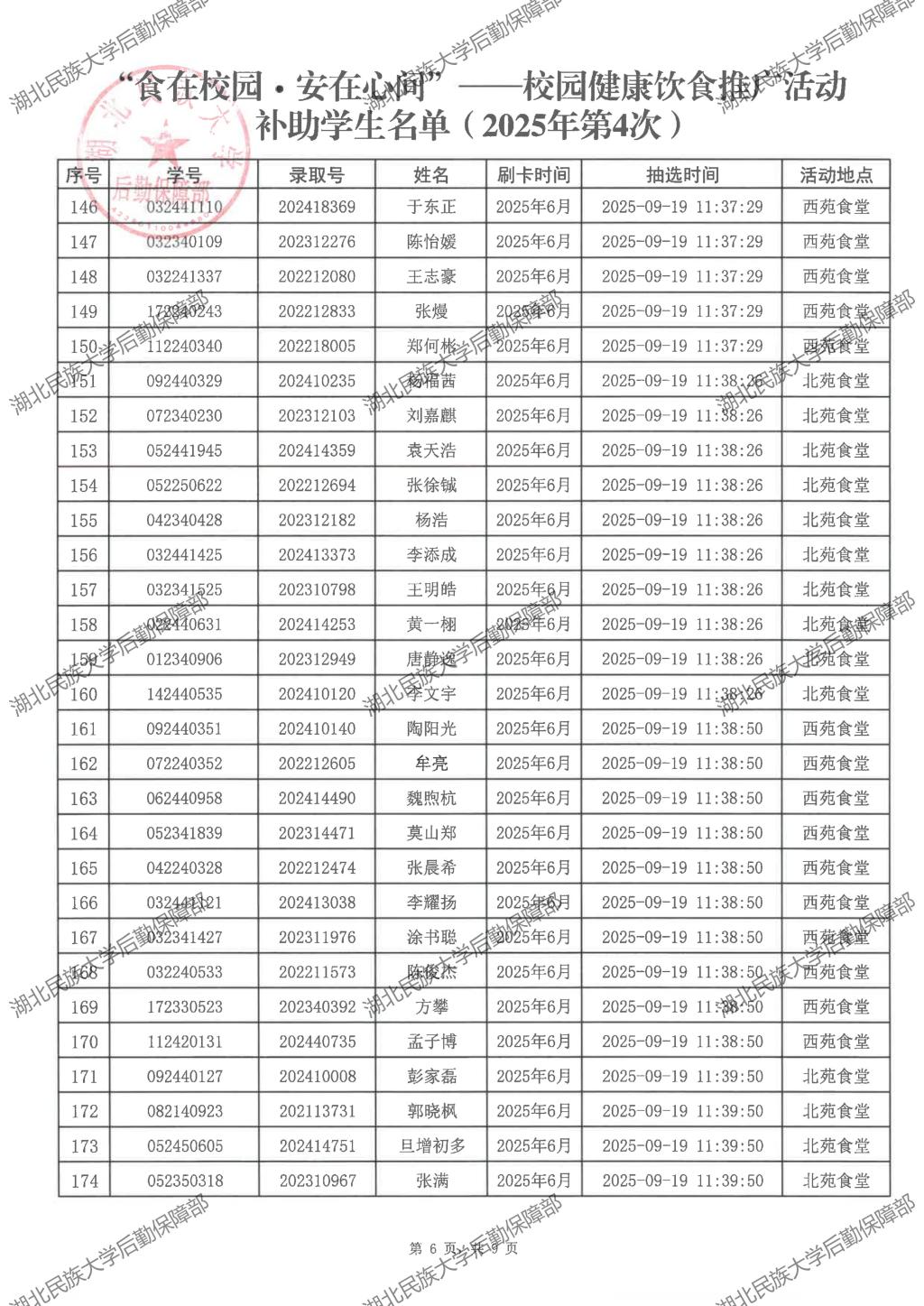 “食在校园·安在心间”——校园健康饮食推广活动(2025年6月)补助学生名单公示