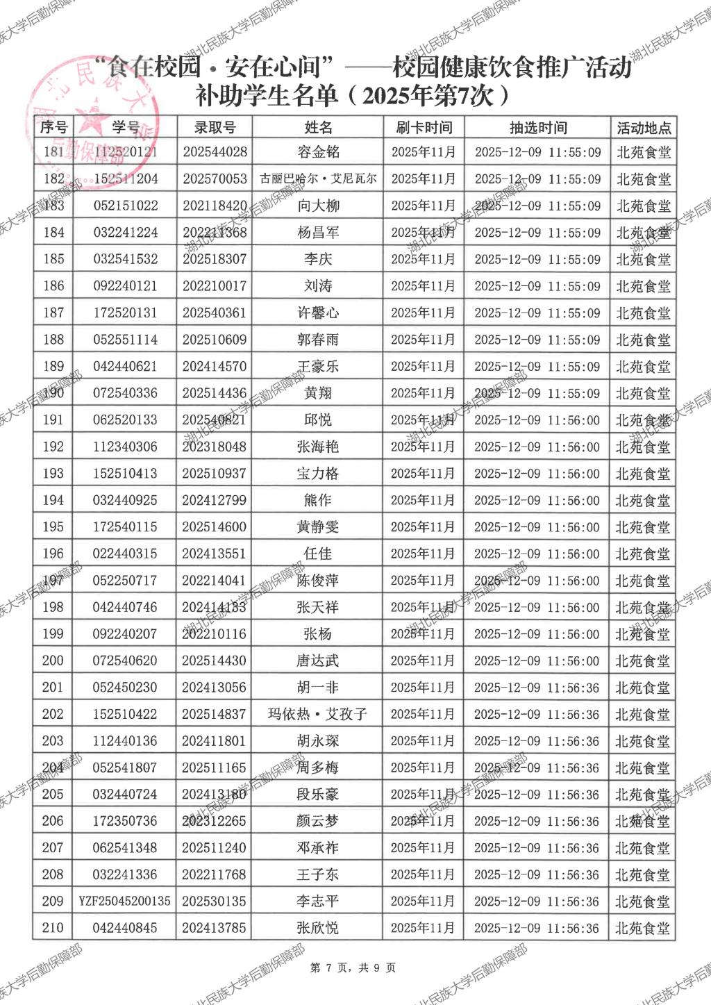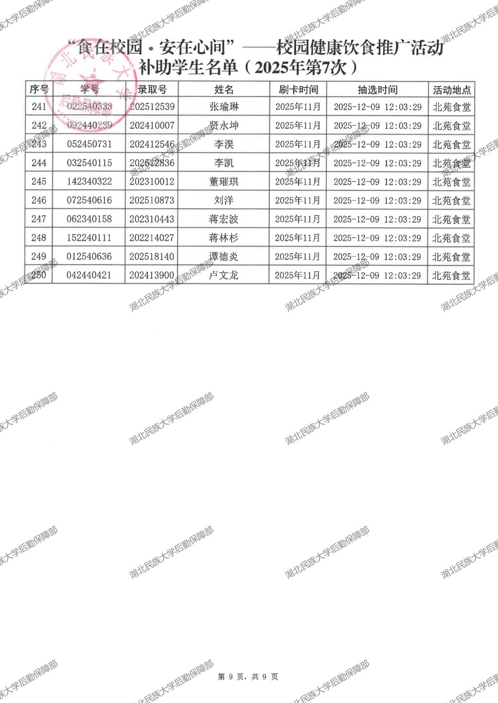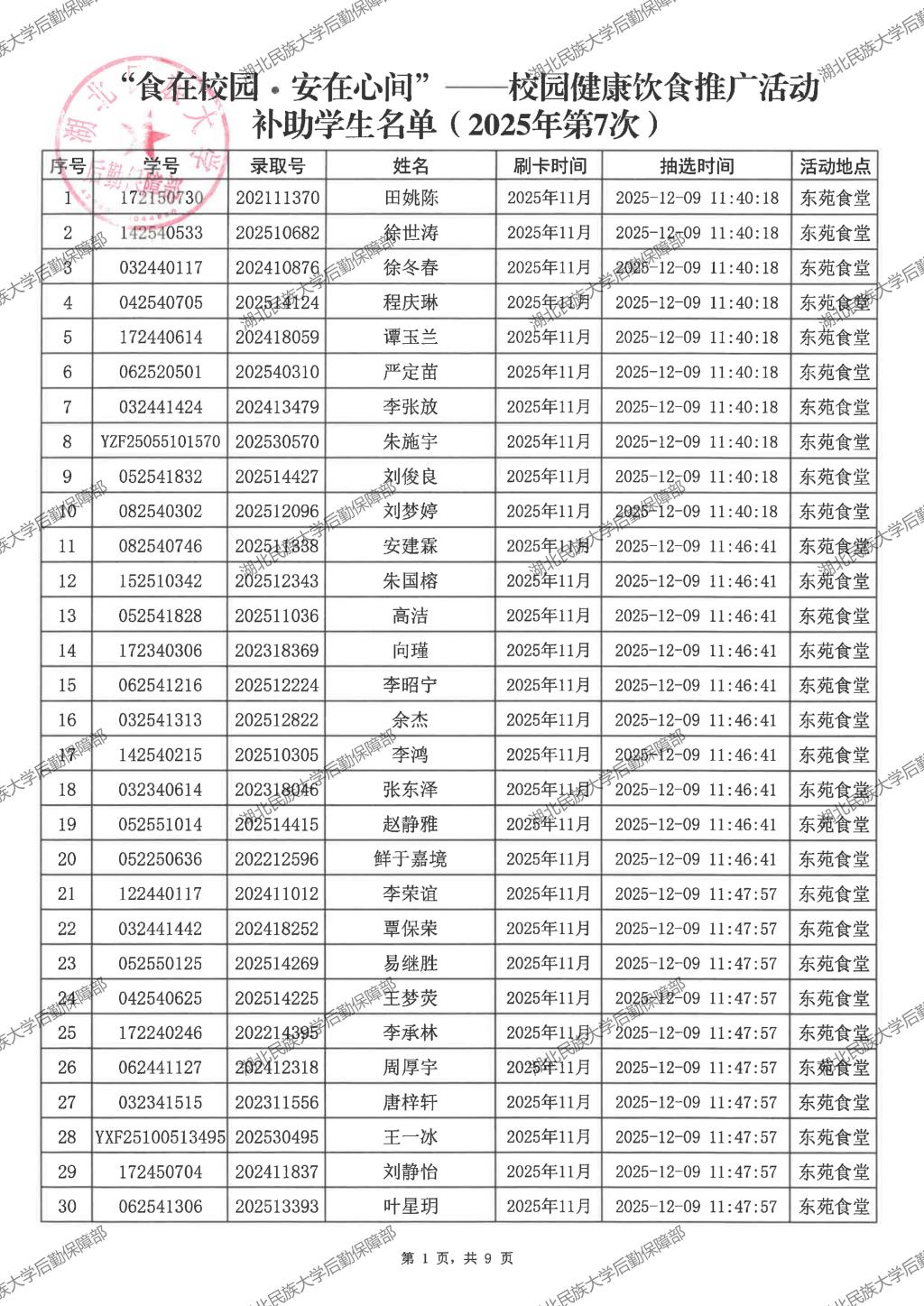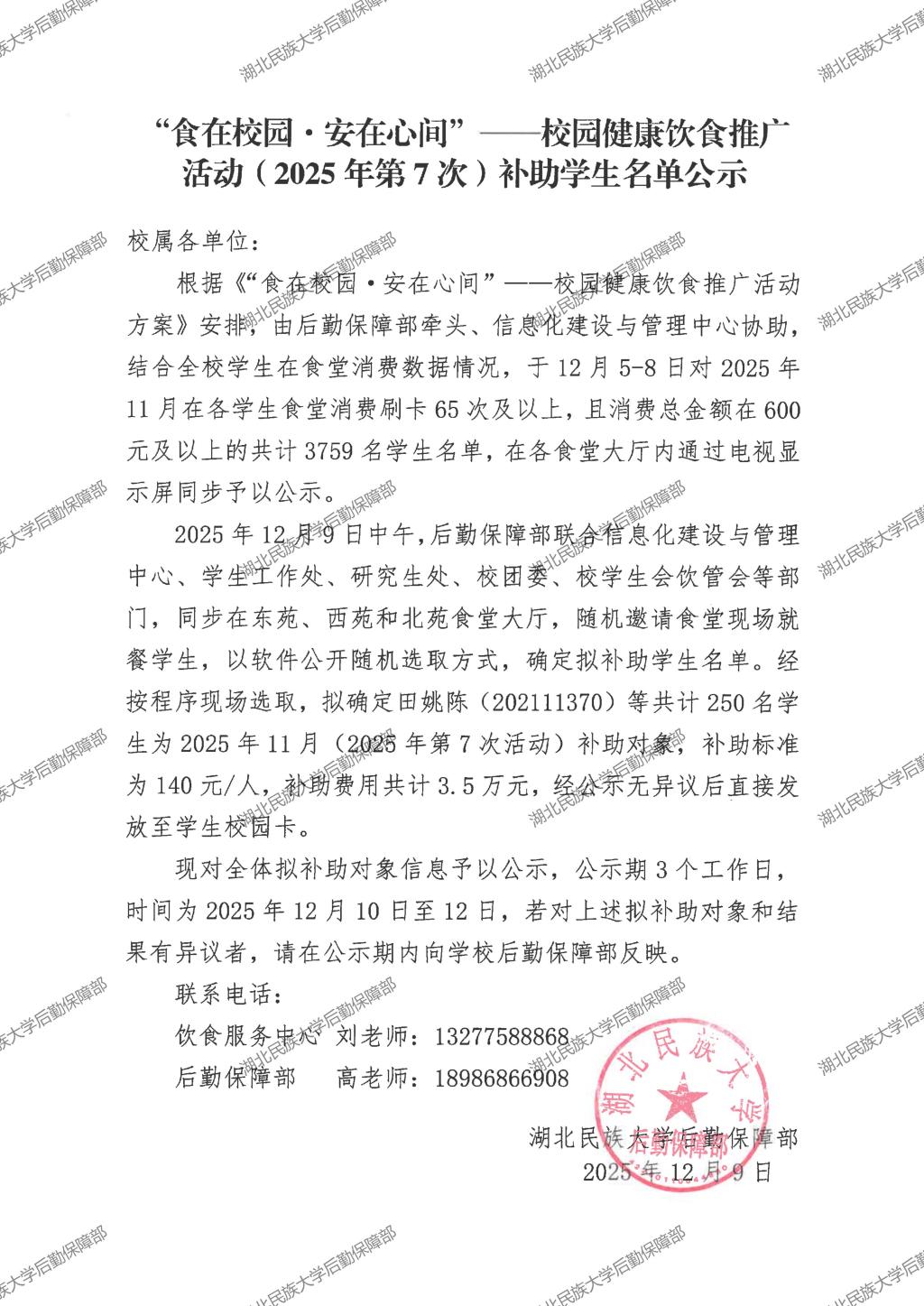 “食在校园·安在心间”——校园健康饮食推广活动(2025年第7次)补助学生名单公示