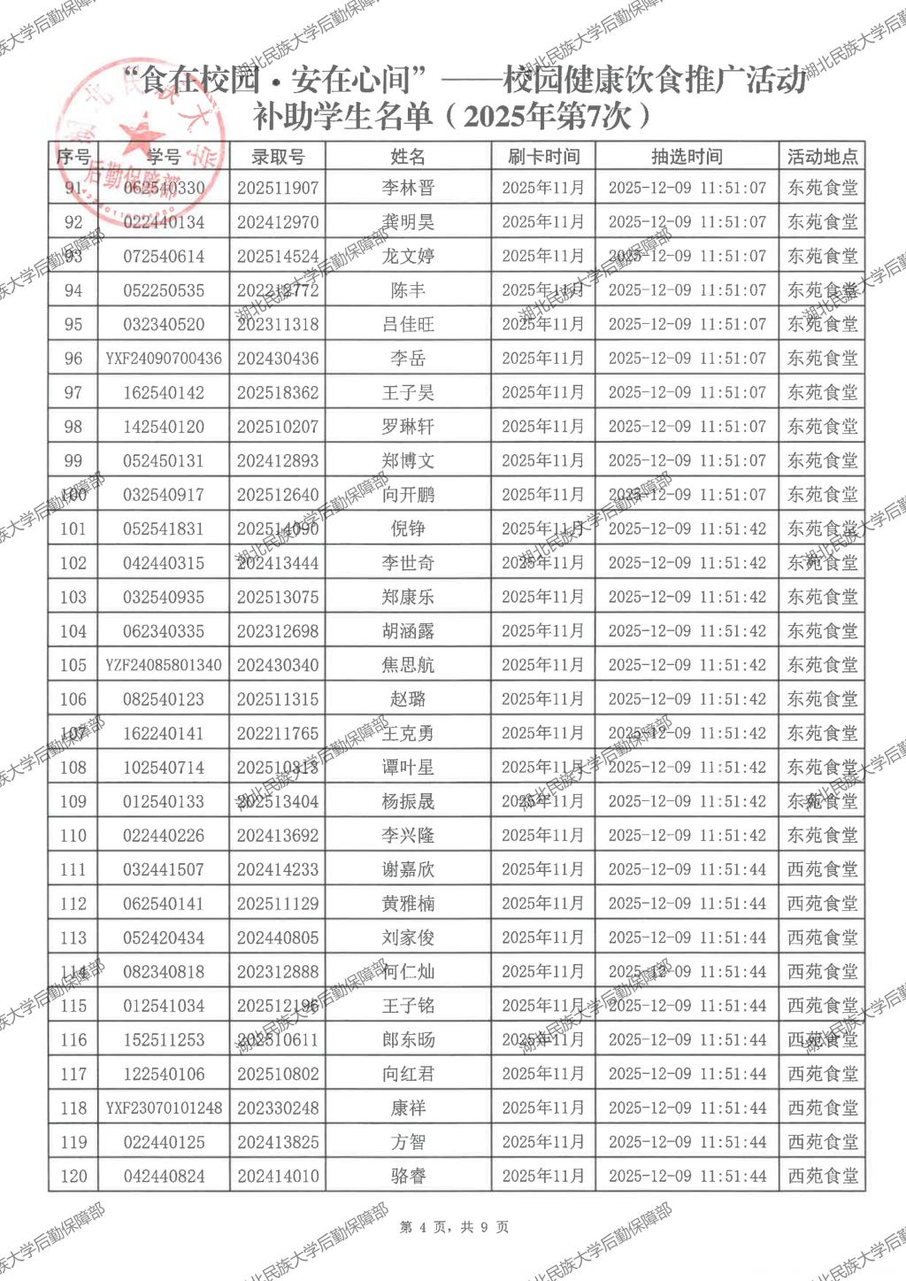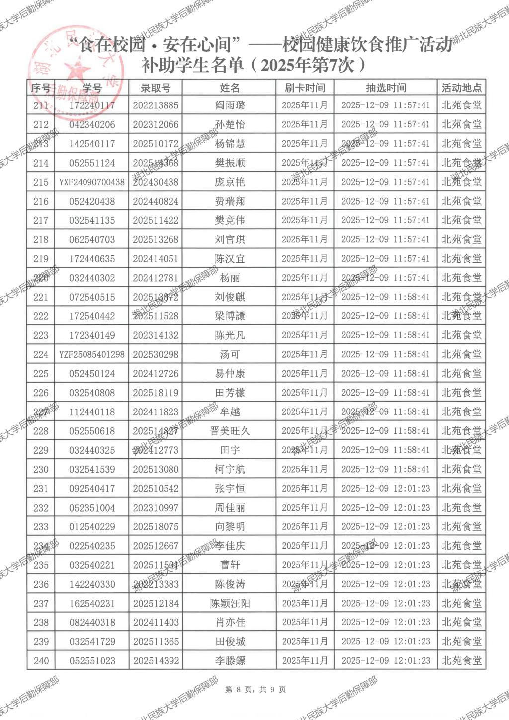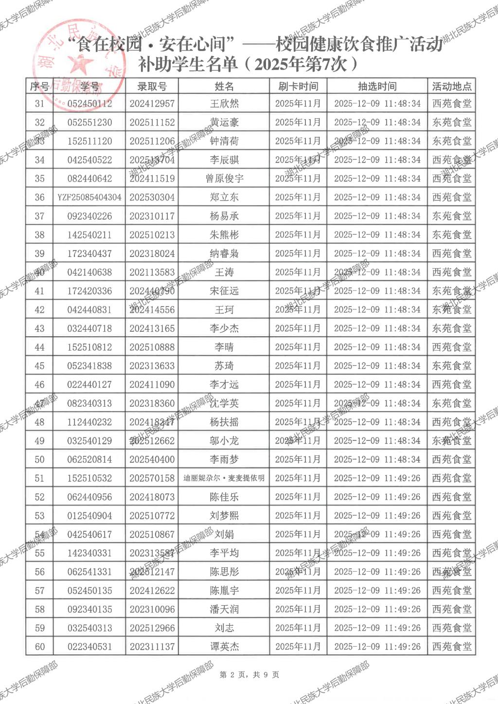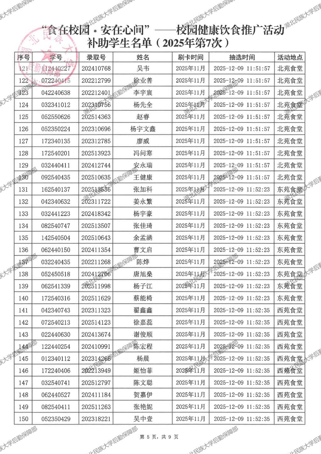 “食在校园·安在心间”——校园健康饮食推广活动(2025年第7次)补助学生名单公示