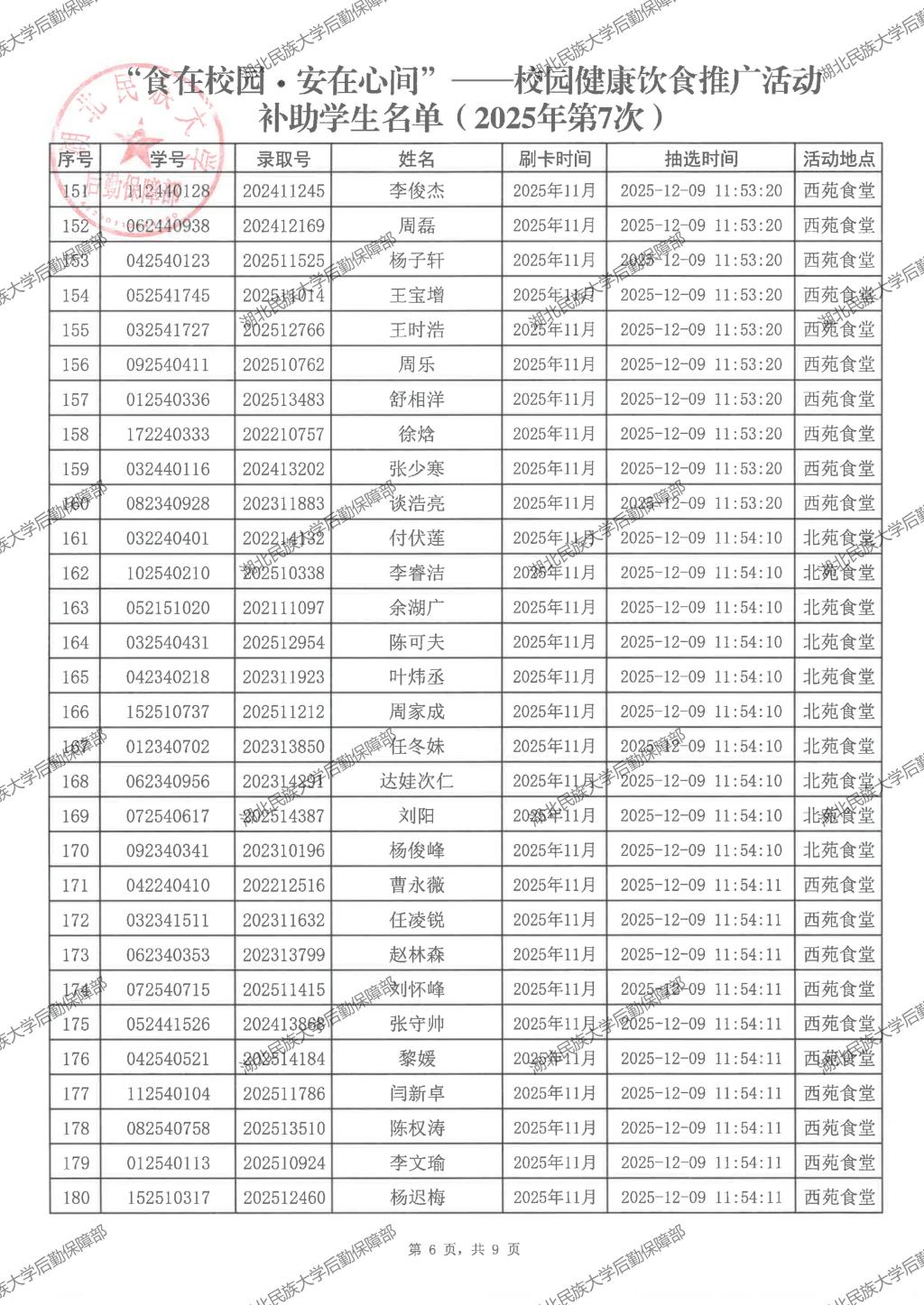 “食在校园·安在心间”——校园健康饮食推广活动(2025年第6次)补助学生名单公示