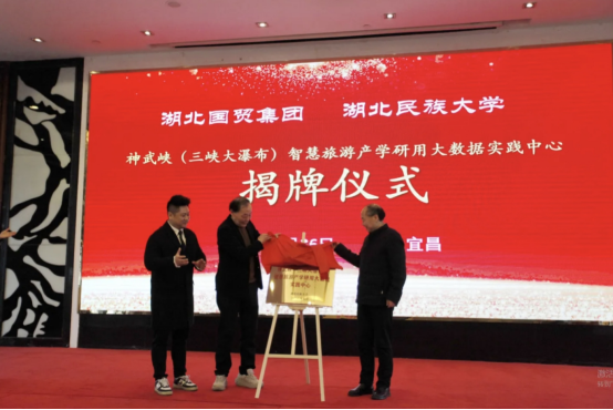 本网讯(作者 谭志喜/图/文)1月26日下午,湖北民族大学与湖北国贸集团战略合作签约暨“湖北民族大学·神武峡(三峡大瀑布)智慧旅游产学研用大数据实践中心”揭牌仪式在宜昌举行。