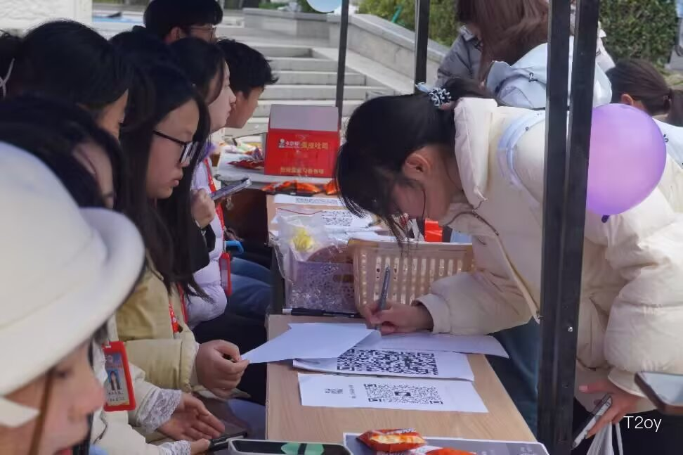 活动现场气氛热烈,众多学生纷纷驻足,深入了解活动详情并积极参与预约登记。工作人员在现场全面介绍活动的核心机制:学生只需通过线上专属平台完成信息登记,即可预约阿里巴巴集团青年员工的一对一指导名额。指导内容涵盖学业瓶颈突破、成长迷茫疏导、人际交往技巧、职业方向规划、求职准备要点、技能提升路径等多个维度。
