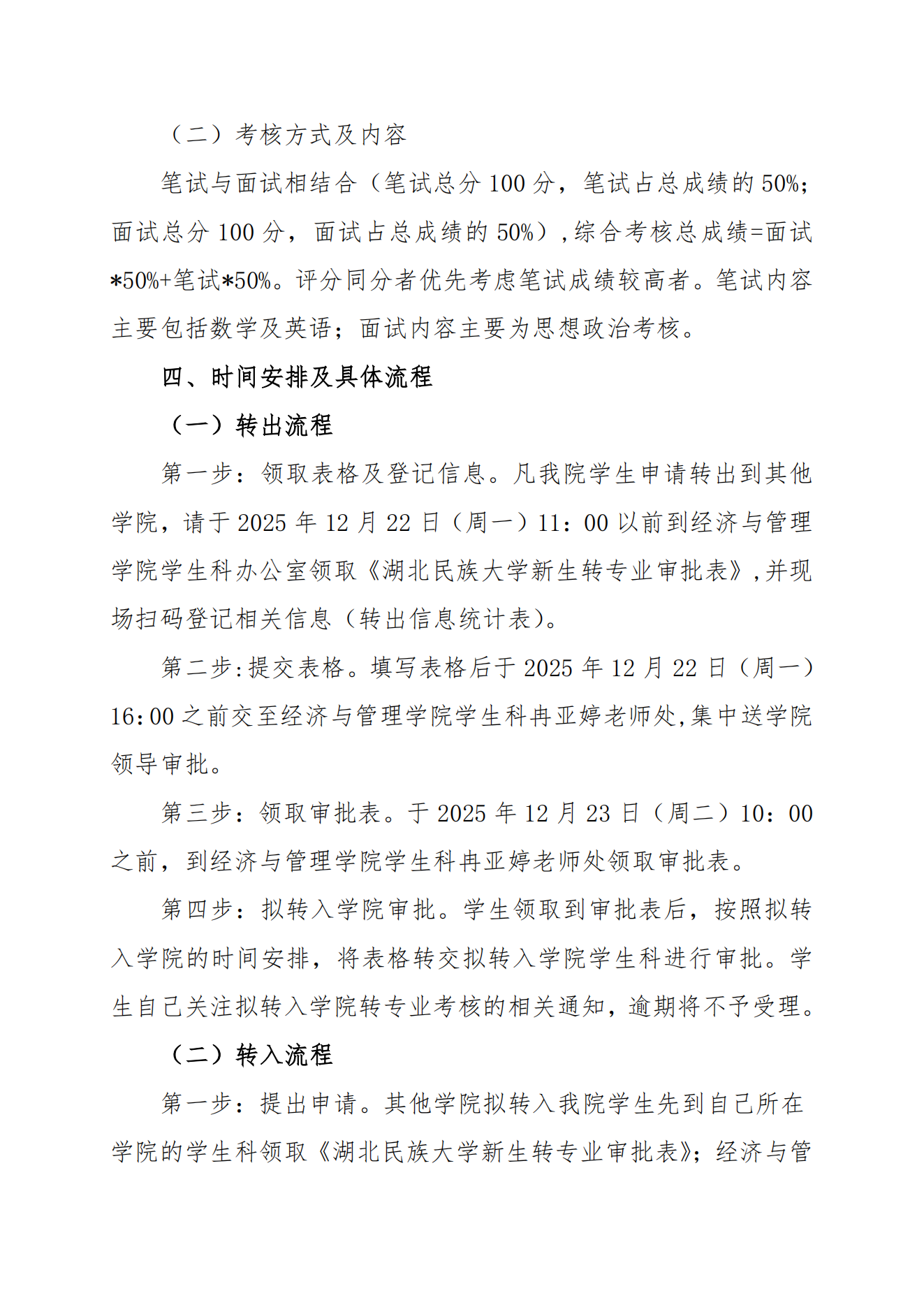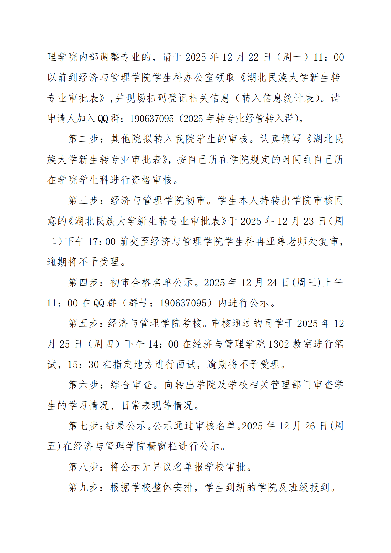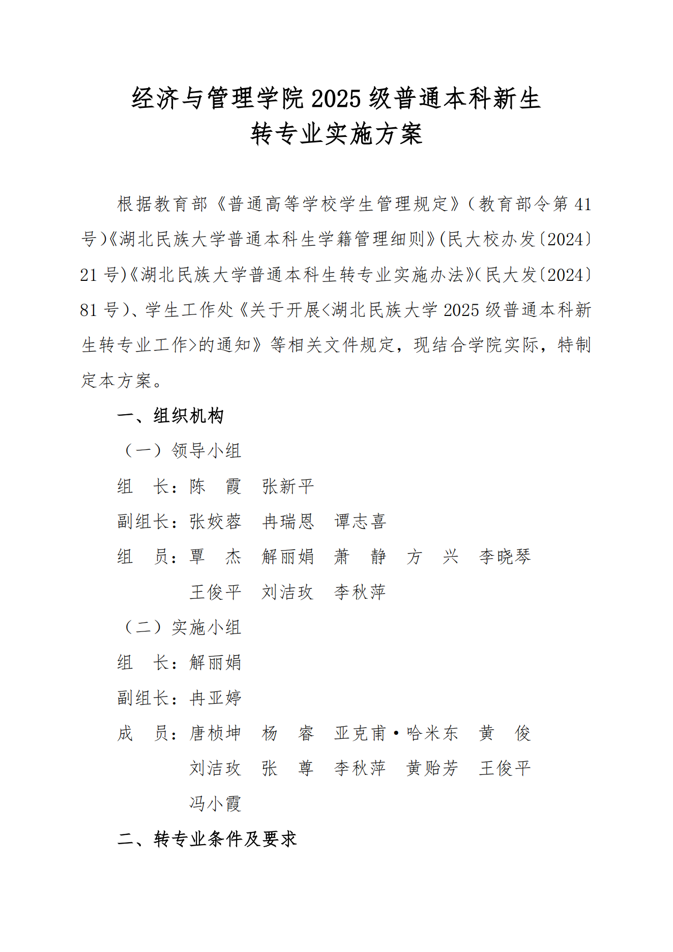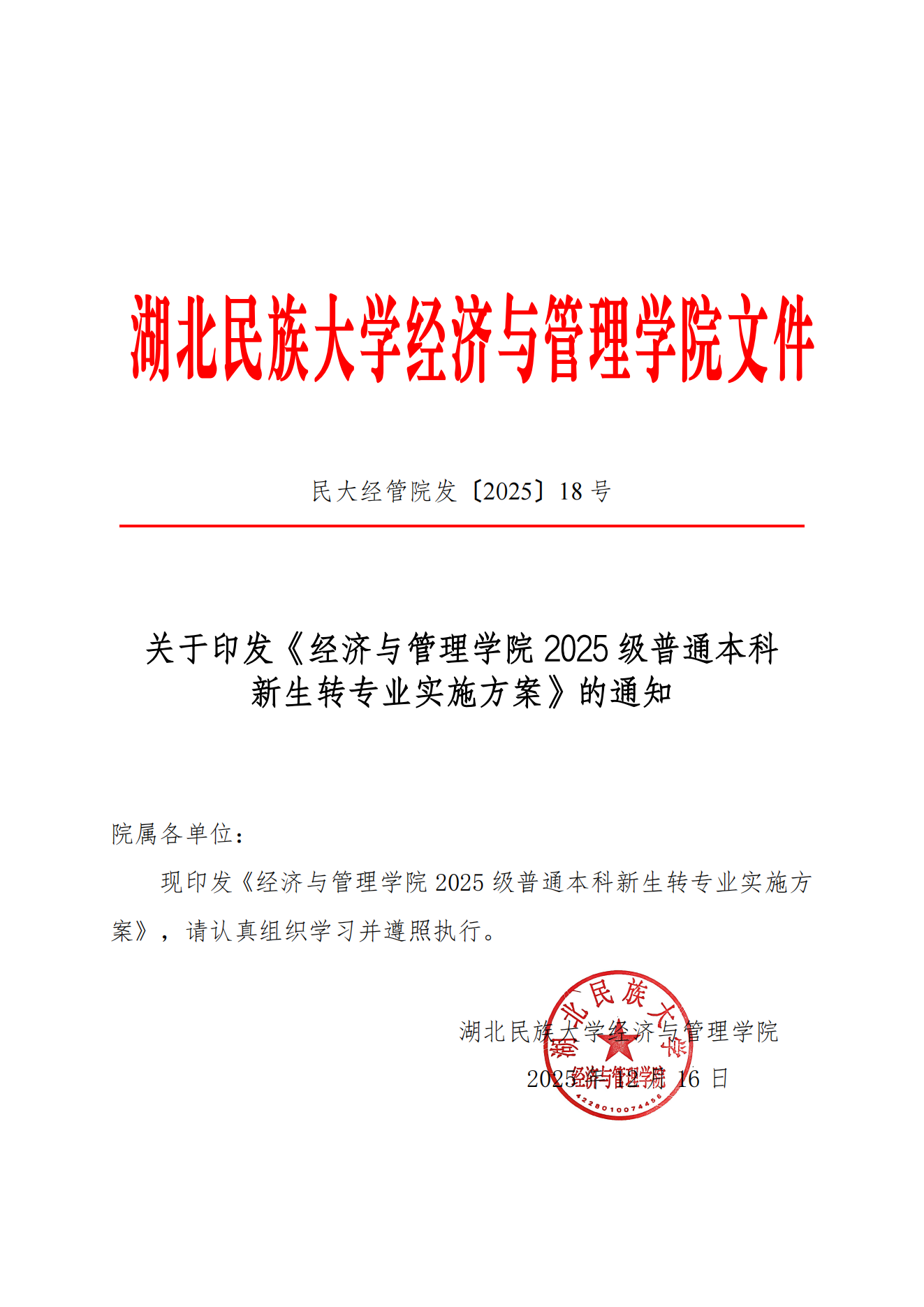经济与管理学院2025级普通本科新生转专业实施方案