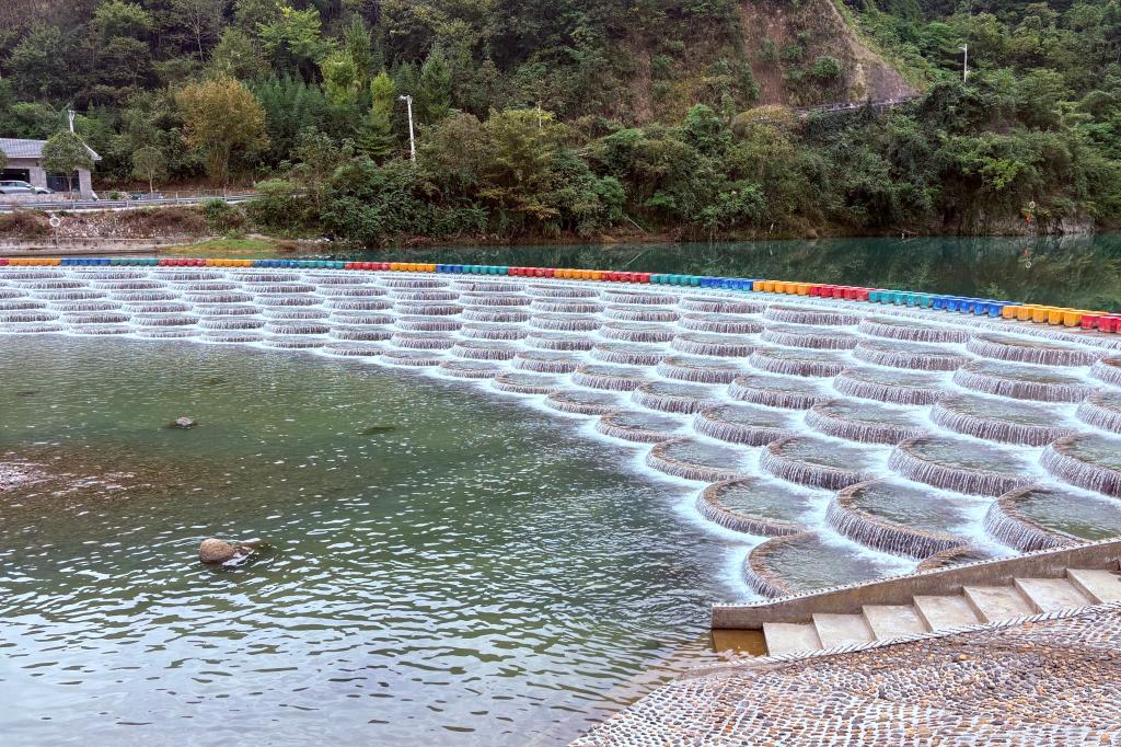 踏出文化大院,感受乡村风光与自然生态,彩色游步道蜿蜒入田园,最终抵达由村民巧妙设计的鱼鳞坝。这座人工叠式堰坝,兼具水利功能与旅游观光价值,鱼鳞状叠水在阳光下熠熠生辉,如今已成为亲子游、休闲游的热门去处,展现出乡土智慧与生态景观的和谐统一。