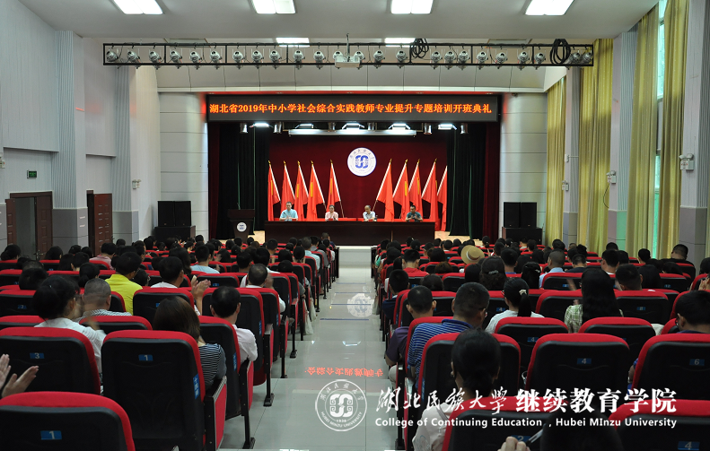 本网讯(通讯员朱倩)湖北省“中小学幼儿园教师素质提升工程(2019)”——中小学社会综合实践教师专业提升专题培训项目开班典礼于7月22日在我校行政楼1号会议室举行。继续教育学院副院长刘贤锋、非学历教育科工作人员及全体参训学员参加了典礼。典礼由非学历教育科副科长杨斌主持。