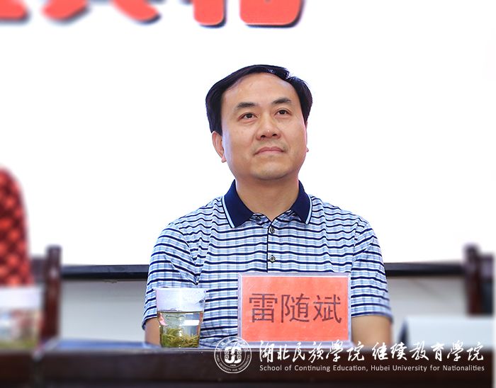 雷随斌致欢迎辞,他代表学院对此次培训班在我校顺利开班表示热烈祝贺,对全体学员朋友来我校学习表示诚挚的欢迎,对湖北民族学院的办学情况和继续教育工作开展情况作了简要介绍,最后勉励各位培训学员珍惜难得的学习机会,以积极进取的心态、饱满的学习热情投入到培训活动之中,真正提高妇联工作的理论水平和实际工作能力。