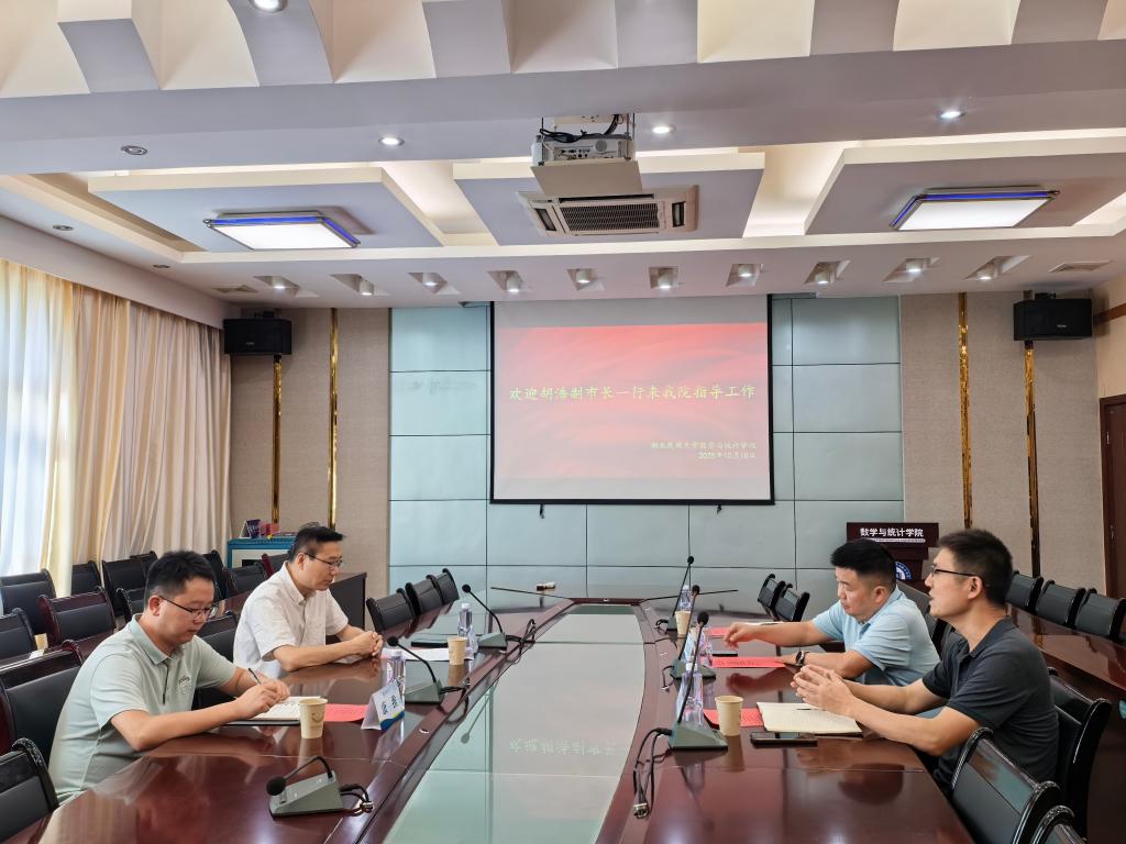 调研中,学院领导向胡浩一行简要汇报了数学与统计学院在学科建设、人才培养、科学研究等方面的基本情况与发展规划,重点介绍了国家天元数学中部中心恩施基地的建设情况、以及未来规划,对恩施市人民政府和武汉大学对基地建设的支持关心表示衷心感谢。
