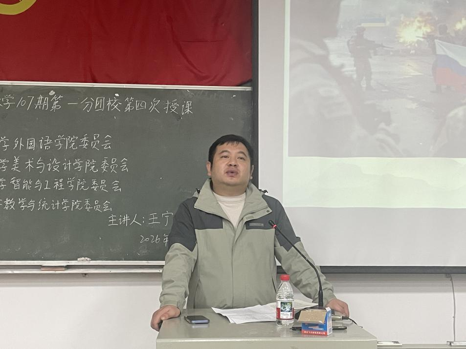 4月12日下午,湖北民族大学第107期团校第一分团校第四次授课在外国语学院6401教室举行。本次授课由数学与统计学院团委书记王宁奎老师主讲,数学与统计学院、外国语学院、美术与设计学院、智能科学与工程学院的团校学员共同参与学习,旨在深化团员青年思想理论教育,夯实学习基础,强化责任担当。