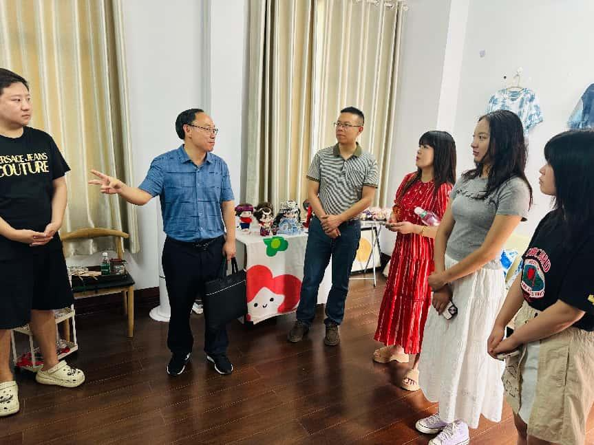 随后,田景福亲临创新创业孵化基地,实地考察“鹿小染”项目进展。项目指导教师毛伟臣详细汇报了“流光‘遗’彩”宣教小组工作开展与项目运营的结合情况。该小组由校党委统战部于2024年12月指导成立,依托“鹿小染”文创与“潮派玩具”双创项目,紧密围绕铸牢中华民族共同体意识为核心,开展民族文化宣传教育与志愿服务。田景福在肯定项目现有成绩的同时,提出了更高期许:“项目需进一步与学校、学院文化深度融合,着力打造具有湖北民族大学印记的品牌产品。”