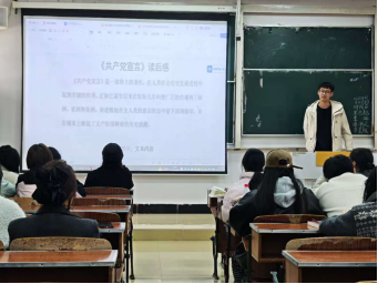 本报讯 3月12日下午,为引导我院研究生深入研读马克思主义经典著作,传承红色基因,打牢理论根基,进一步营造浓厚的学习氛围,培育严谨扎实的学风作风,学院研究生组织开展了本期《共产党宣言》读书分享会。活动由刘熙鹏同学主持,现场气氛热烈,同学们积极参与、踊跃发言,在交流中深化理解,在思考中坚定信仰。