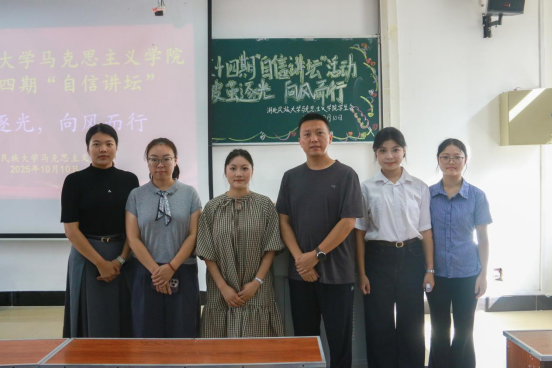 为激励青年学子以坚韧意志突破困境、以积极姿态追寻理想,10月10日,马克思主义学院第三十四期“自信讲坛”在德智楼9B108教室温情开讲。本期讲坛以“破茧逐光 向风而行”为主题,特邀我院党的建设专业研究生、湖北省第八届“长江学子”王贵红分享奋斗故事,学院党总支书记向驰、学生科科长杨婷受邀出席。我院全体大一学生到场参加。