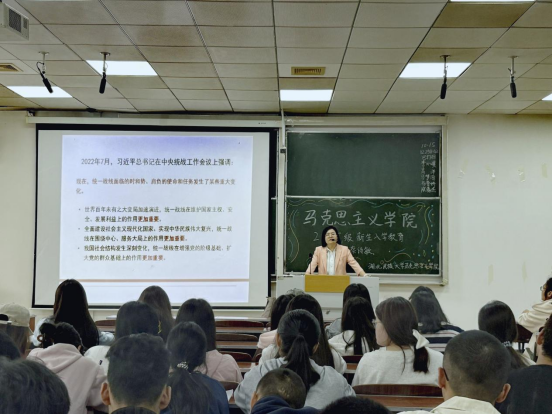 (思想政治教育系党支部书记蔡诗敏为新生做入学教育)