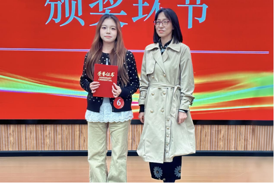 (袁琳老师为我院选手邹倩颁奖)