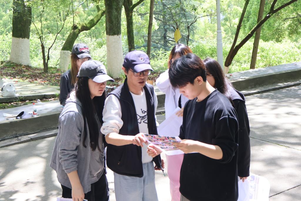 活动现场,50余名学生党员与积极分子以小组为单位,俯身于阶梯之上,执笔运彩,专注投入。在专业教师指导下,他们细心勾勒土家织锦的传统纹样,一笔一画间,莲花的清雅、菱形的规整渐次呈现。尽管天气炎热,师生们依然热情不减,有序协作。从线稿定位到填色渲染,从纹样修饰到整体调整,各环节衔接顺畅。党建教师穿行其间,结合彩绘进度实时讲解图案中的廉政内涵,使阶梯化作露天课堂,实现了艺术实践与思政教育的生动融合。