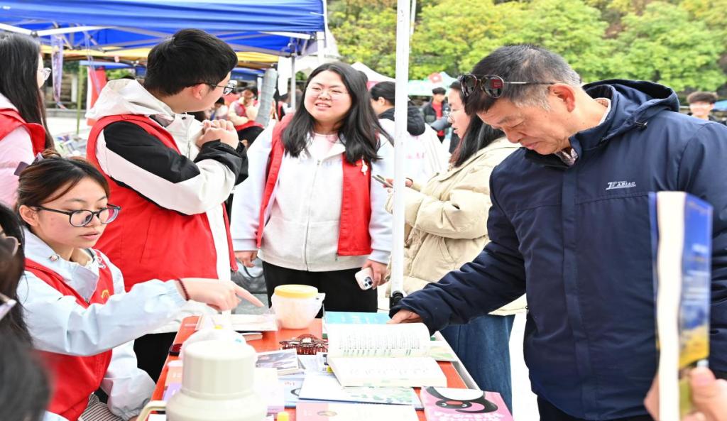 践行绿色低碳理念,汇聚青春公益力量,让闲置物资焕发新生、让爱心善意持续传递。3月21日,外国语学院团委联合青马班学员,在学校大学生广场举办“集市传温情,青春益同行”旧物义卖主题志愿服务活动。前期筹备阶段,学院面向全院师生广泛征集教材书籍、备考资料、文创手作等各类闲置物品,完成统一筛选、清洁整理与分类定价,同步推进志愿者招募与培训工作,全力保障活动有序开展。活动现场,青马班志愿者热情值守、耐心推介,同时开设“你的名字,全世界怎么说”特色互动环节,将顾客姓名翻译成多国语言并手写展示,把外语专业特色与公益活动深度融合,让义卖集市兼具温度与外语文化氛围。