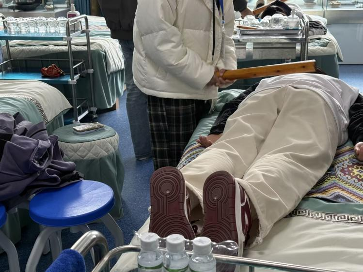 此次活动设置了三大特色疗法体验项目,让师生们全方位感受民族医药的魅力。其中,三百棒疗法,又称 “赶棒”或“神棒疗法”,是土家族民间 “防病治病” 的经典疗法,能快速疏通经络、驱散寒湿,有效缓解久坐引发的腰背酸痛、晨起肩颈僵硬等问题。蔡金晓在体验过后反馈:“敲打时感觉温热感慢慢渗进骨头里,原本发僵的肩膀一下子放松了。”土家酒火疗法,将高度药酒、火、推拿三者深度融合,具有驱散深层寒气,促进血液循环的功效。土家推拿同样备受青睐,它针对脊柱两侧的膀胱经穴位,常用揉、推、点按法,可有效缓解腰背酸痛,调节脏腑功能。