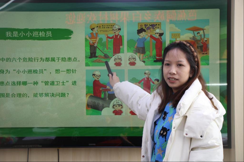 面向高年级学生,志愿者从石油、天然气及管道运输的基本概念讲起,结合实例说明其分布与重要性。在小组讨论中,同学们积极比较不同运输方式的优劣,深化对管道运输适配性的理解。随后,志愿者系统讲解了地面标识、无人机巡查、视频监控、光纤报警等管道保护技术,并通过“技术匹配”游戏巩固学习效果。活动还围绕“六不”原则,强调管道保护的具体注意事项。