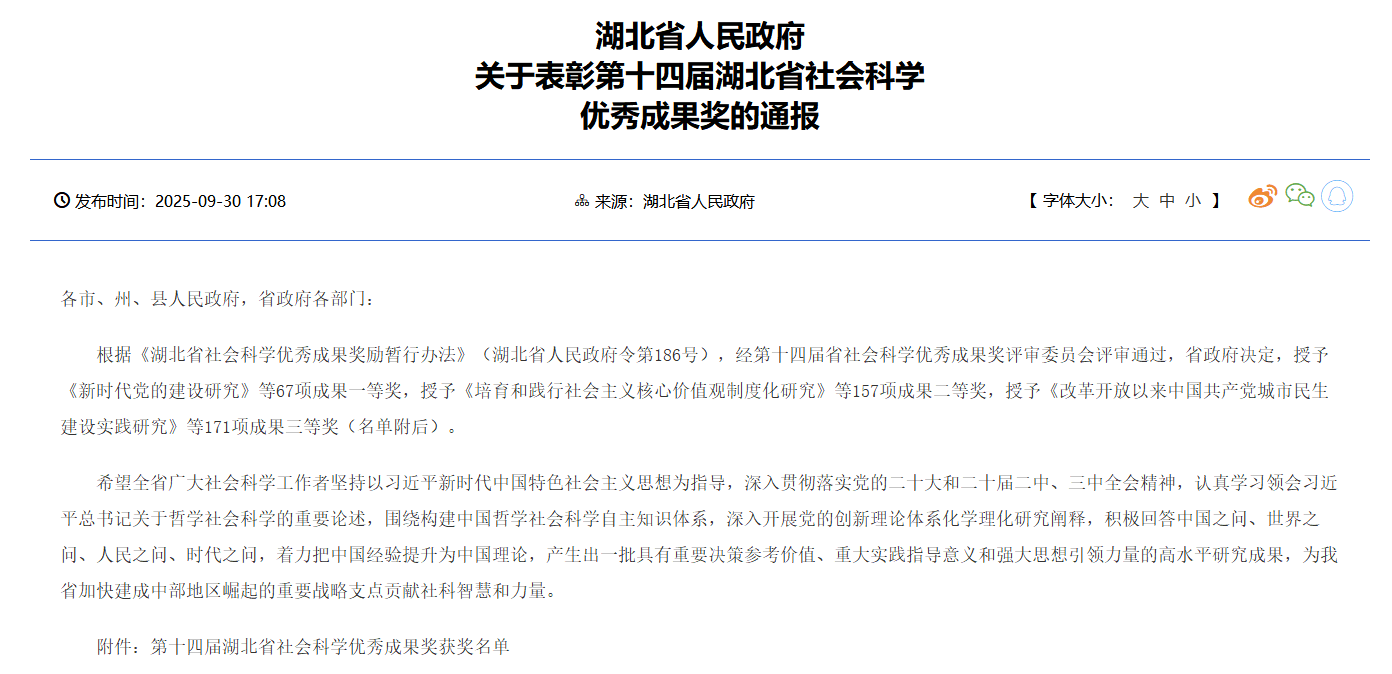 13 2025-10 我院教师在第十四届湖北省社会科学优秀成果奖评选中喜获佳绩