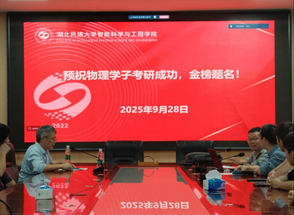 为鼓舞考研学子士气,提供科学备考指导,助力学生成功“上岸”,2025年9月28日,我院物理学专业在集成楼212会议室召开了考研冲刺动员暨报考指导大会。物理系党支部书记蒋冰峰教授、研究生办公室负责人艾青主任出席会议,全体备战考研的毕业生参会。会议由专业负责人刘显明教授主持。