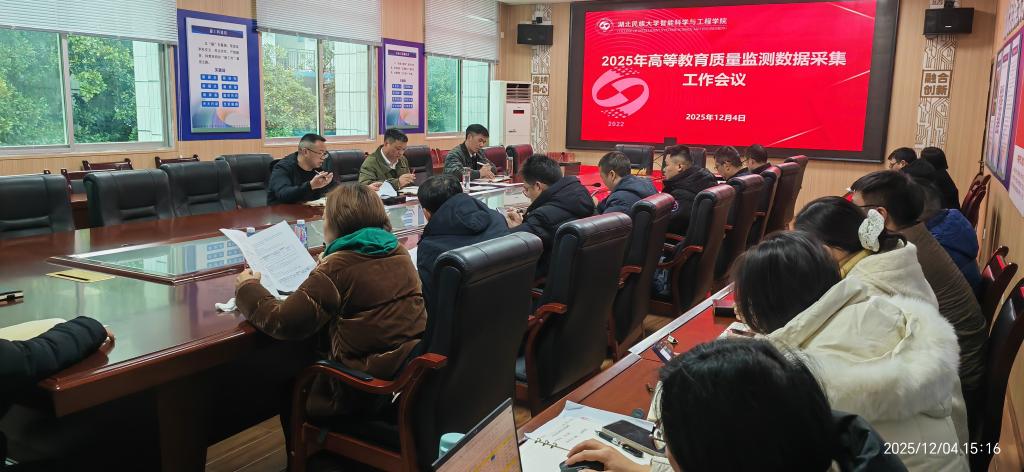 面贯彻落实《教育部办公厅关于做好高等教育质量监测2025年数据采集工作的通知》(教督厅函〔2025〕16号)及湖北省教育厅相关工作要求,高效有序推进我院数据采集与填报工作,2025年12月4日,智能科学与工程学院组织召开“2025年高等教育质量监测数据采集工作部署会议”。会议由教学副院长向军主持,学院领导、专业负责人、科室负责人及系领导参加会议。