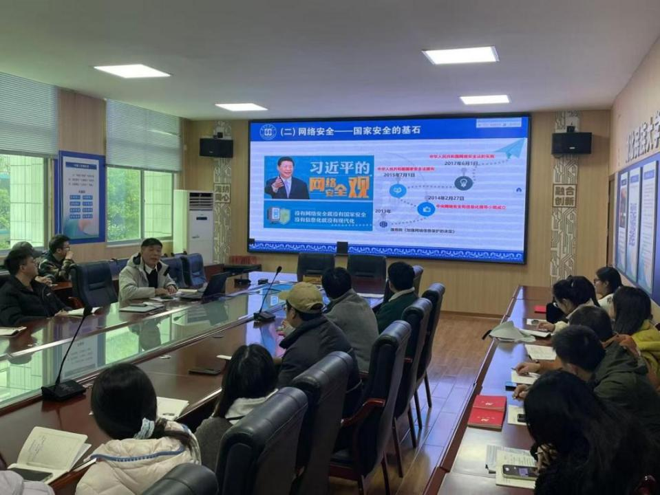 为深入学习宣传贯彻党的二十届四中全会精神,准确把握全会关于网信工作的新部署新要求,切实把思想和行动统一到党中央决策部署上来,2025年12月18日,湖北民族大学智能科学与工程学院研究生党支部在学院212会议室举办“数智时代网络安全新形势新要求”专题党课。学院党委委员、副院长沈济南担任主讲人,研究生党支部全体党员参加学习。