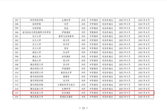 近日,教育部办公厅正式发布《关于公布2025年通过普通高等学校师范类专业认证专业名单及中期审核专业名单的通知》(教师厅函〔2025〕18号)。根据通知,我院体育教育专业通过普通高等学校师范类专业中学教育第二级认证,认证结论有效期六年,自2025年9月起至2031年8月止。