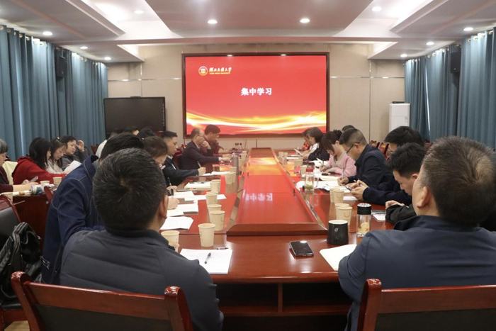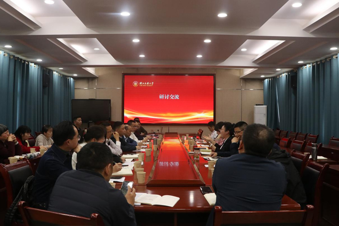 本网讯(文字/ 康蕊 黄婷婷 图片/黄婷婷)4月23日下午,湖北民族大学教务党支部、文学与传媒学院新闻传播系教工党支部、影视艺术系教工党支部,在文传院智慧教室一联合开展4月份支部主题党日活动。本次活动以“树立和践行正确政绩观,服务基层教学组织建设”为主题,将理论学习、纪法教育、特色实践与微专业建设深度融合,研讨务实深入、氛围浓厚。会议由新闻传播系教工党支部书记李勋灿主持,三个支部全体党员参会,文学与传媒学院院长张宏树列席会议。