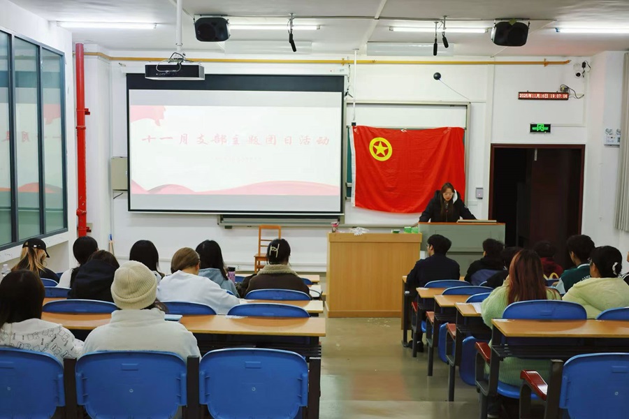 本网讯(记者 李若君 王诗忆(见习)郑雅晴(见习)/文 )11月16日,为深入学习贯彻习近平新时代中国特色社会主义思想和党的二十大精神,引导青年学子树立远大理想、勇担时代使命。我院0124411支部在修远楼5A406教室开展以“学习全会精神 青年赋能强国”为主题的团日活动。班长龙梦翟担任主持人,支部全体学生参加活动。