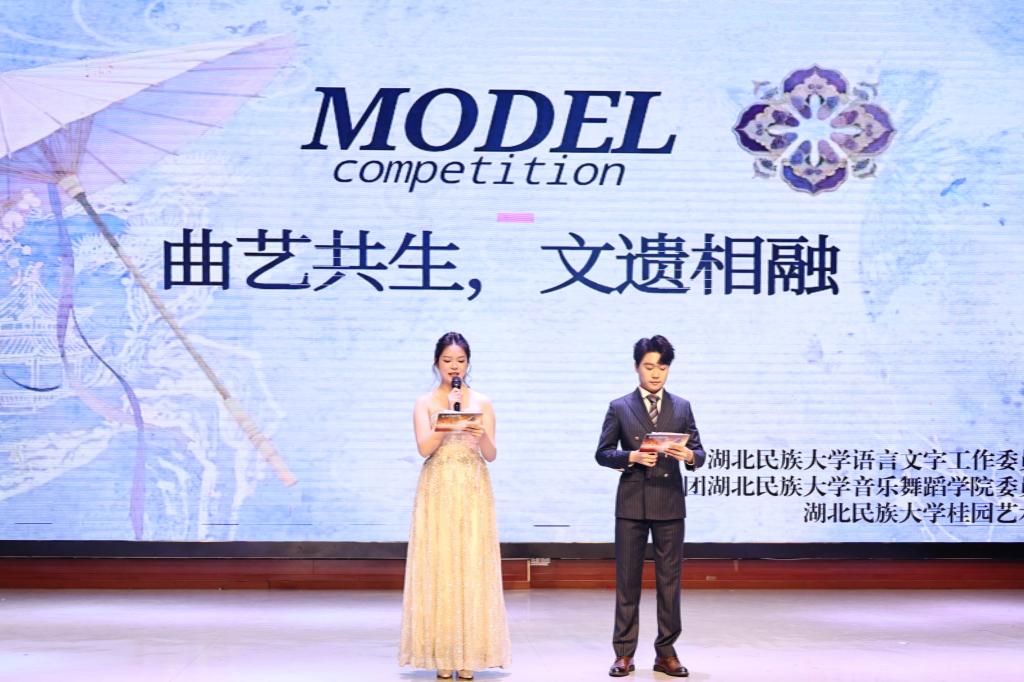 本网讯(记者 韩璐(见习) 白彩凤 龙琪(见习)/文 李悠然(见习)/图)12月7日,由湖北民族大学语言艺术团、共青团湖北民族大学音乐舞蹈学院委员会社团管理部联合主办,桂园艺术团承办的以“曲艺共生,文遗相融”为主题的第二届校园模特礼仪大赛在音乐舞蹈学院演播厅举行。教师教育学院副院长郑艺...