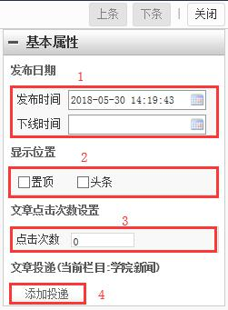 1、“发布日期”属性,可以修改文章的发布时间并设置文章的下线时间,文章到下线 时间时便会自动撤稿无需手动撤稿;