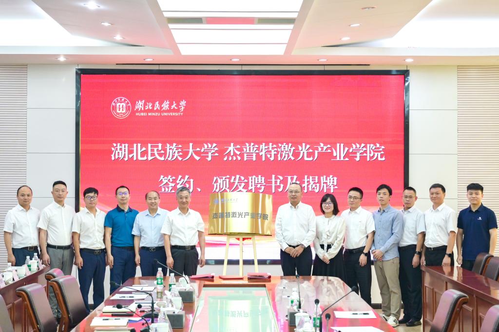 6月16日,深圳市杰普特光电股份有限公司与湖北民族大学智能科学与工程学院共建杰普特激光产业学院签约、颁发聘书及揭牌仪式在学校举行。校长顿祖义出席仪式,代表学校与杰出校友、深圳市杰普特光电股份有限公司董事长黄治家签约,并共同为“杰普特激光产业学院”揭牌。党委常委、副校长李军主持揭牌仪式。