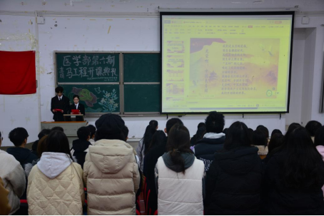 本网讯 (通讯员 钟茹 赵思惠 张甜甜/文 陈思颖/摄) 11月27日,医学部在修远楼5A207开展了“湖北民族大学医学部青年马克思主义者暨三十一期学生干部综合素质培训班”开课典礼。医学部学生工作办公室副主任高梦琪,学生工作办公室老师艾尔肯·吾斯曼、吴巧诗、于晓旭、谭雯心受邀出席典礼,青马班72名学员参加典礼。