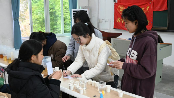 其后的“精准复现”环节则将活动推向了高潮。同学们需依据自己记录的配方,重新调配出一杯相同的茶,交给三位“品尝官”进行品鉴。品尝官们从养生适配度、配比科学性、色泽口感等多个维度进行评判,为得到认可的饮品盖上专属印章。