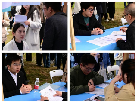 招聘会现场气氛热烈而有序,草坪上人头攒动、交流声此起彼伏,处处洋溢着青春的朝气与求职的热情。与传统招聘会相比,本次活动的多元化服务成为一大亮点,为学子们提供了全方位的求职保障。